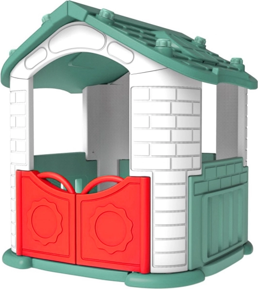 Hochwertiges Kinderspielhaus aus widerstandsfähigem HDPE, bekannt für seine Elastizität und Beständigkeit gegen mechanische Beschädigungen. Die Konstruktion ist für eine einfache Montage und Stabilität dank der doppelten Kunststoffwände konzipiert, die mit Sand oder Schutt gefüllt werden können, um noch mehr Festigkeit zu bieten.