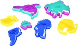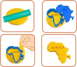 Das Set enthält alles Notwendige: Modelliermasse in fünf Farben, 7 Kontinentformen, 7 Stempel mit Kontinentnamen und eine Rolle. Einfach die Modelliermasse auf eine dünnere Schicht ausrollen und mit den Ausstechformen die gewünschten Kontinente erstellen.