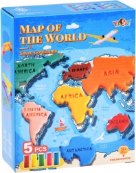 Dieses Kunstset ist ideal für Kinder, die kreative Aktivitäten lieben. Es entwickelt manuelle Geschicklichkeit, Fantasie und Kreativität. Das Set ermöglicht es Ihnen, nicht nur Kontinentformen zu erstellen, sondern auch deren Namen auf Englisch zu lernen und so Ihr geografisches Wissen zu erweitern.