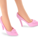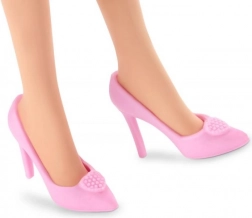 Pastellfarbene Absätze mit Herzchen vervollständigen das Outfit und betonen den modischen Charakter der Puppe.