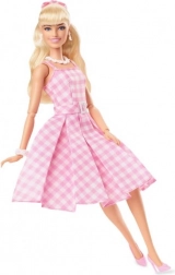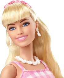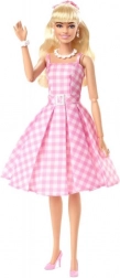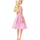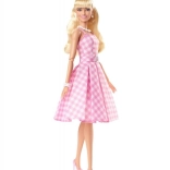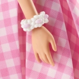Diese BARBIE Film-Puppe besticht durch ihren zeitlosen Stil und die liebevollen Details. Sie hat lange blonde Haare, gebunden mit einer rosa Schleife, die von Gänseblümchen-Ohrringen und -Halskette ergänzt werden. Das rosa-weiße karierte Kleid im Vintage-Stil wird durch einen Plisseerock und Gürtel betont, während die rosa High Heels dem Outfit das gewisse Etwas verleihen.