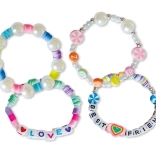 Das Perlen- und Buchstabenset bietet tollen Spaß und fördert Geduld sowie Kreativität. Die Armbänder, die Sie gestalten, werden zum perfekten modischen Accessoire oder zu einem Geschenk für einen lieben Menschen. Das Set enthält: Buchstabenperlen, Kunststoffperlen, perlmuttartige Perlen, silberne Kunststoffperlen, rosa gewachste Schnur, weißes Gummiband, elastische Schnur