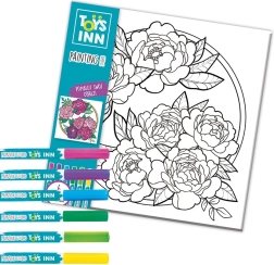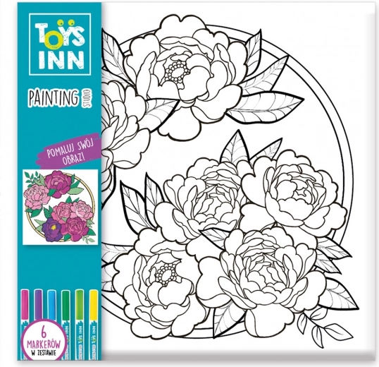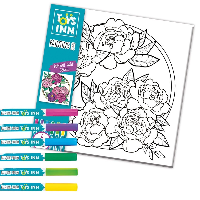 Entdecken Sie ein unterhaltsames Kreativset für Kinder – ein Ausmalbild mit Filzstiften auf Leinwand 29 × 29 cm. Dank 6 farbigen Stiften gestaltet Ihr Kind ein originelles und farbenfrohes Blumenmotiv und fördert dabei Feinmotorik, Kreativität und Geduld.