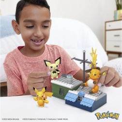 Tauchen Sie ein in die Welt der Pokémon mit diesem fantastischen Bauset, das die ikonischen Figuren Pikachu, Raichu und Pichu enthält. Mit insgesamt 159 Teilen können Sie eine dynamische Szene auf dem Dach bauen, die Raum für kreatives Spielen bietet.
