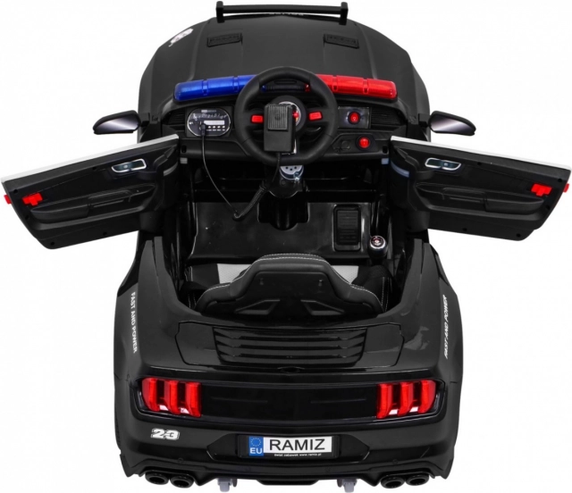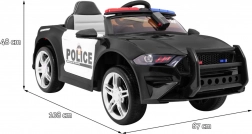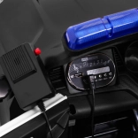 Front- und Rück-LED-Leuchten, Polizeiblinker und ein umfangreiches Audio-Panel mit MP3/USB/SD/AUX sowie vorinstallierten Melodien begeistern jeden kleinen Fahrer.