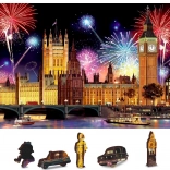 Holzpuzzle London bei Nacht mit Feuerwerk
