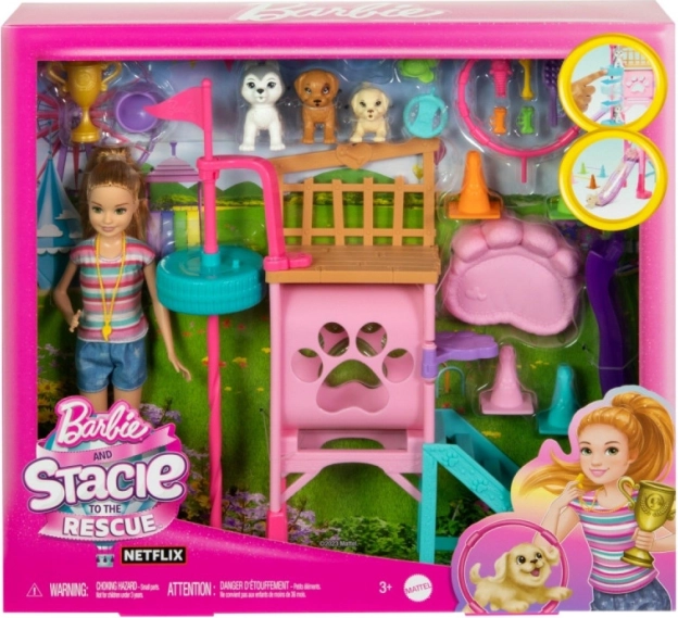 Erleben Sie Spaß und Abenteuer mit dem Barbie Spielset Hundespielplatz mit Stacie. Dieses umfangreiche Set mit über 20 Teilen bietet vielfältige Spielmöglichkeiten für Kinder. Die Puppe Stacie kümmert sich zusammen mit ihren drei Hunden um ein spannendes Hundespielerlebnis.
