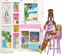 Inklusive BARBIE Puppe und 11 stilvollen Accessoires – Geschirr, 2 Stühlchen, Handtuch und Decke – die das Interieur verschönern und neue Spielideen bringen. Grafische Motive wie Mülltrennung, Pflanzen, Solarpanels auf dem Dach oder ein Elektroauto vermitteln Kindern nebenbei Wissen über Ökologie.