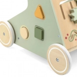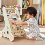 Die robuste Holzkonstruktion und die leichtlaufenden Räder helfen dem Kind, sicher und geschützt Gehen und Gleichgewicht zu üben.
