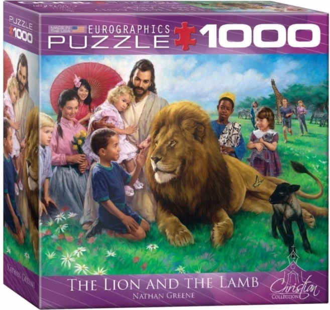 Das Puzzle der Marke EUROGRAPHICS mit dem Motiv Löwe und Lamm bietet aufgrund seines einzigartigen Stanzens ein anspruchsvolles Erlebnis. Es verwendet keine herkömmliche Gitterstruktur, was bedeutet, dass die Teile unkonventionelle Formen und Ecken haben. Dieses Sammlerstück ist ideal für fortgeschrittene Enthusiasten.
