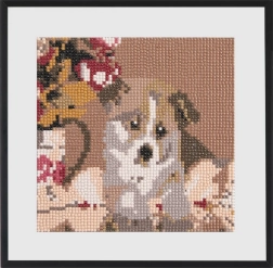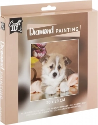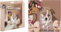 Diamantmalerei ist eine kreative Technik, bei der Sie mithilfe eines Applikationsstifts kleine Steinchen auf eine vorgedruckte, selbstklebende Leinwand aufbringen. Jeder Stein hat seinen Platz gemäß der Legende, sodass das Gestalten intuitiv, beruhigend und auch für Anfänger geeignet ist. Das fertige Bild mit dem Motiv des niedlichen Welpen wird zu einer schönen Dekoration für Ihr Zuhause.