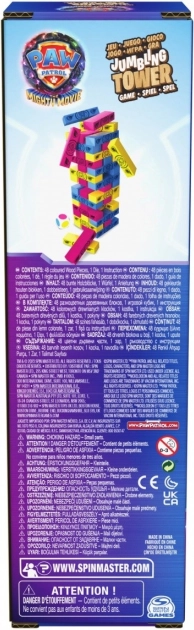 Seid ihr bereit für das PAW Patrol-Spiel: The Great Movie? Wenn ja, macht euch bereit für das actionreiche Tower-Spiel, das den Spaß dieses Filmabenteuers zu euch nach Hause bringt. Dieses Spiel enthält 48 rosa, gelbe und blaue Holzklötze mit Bildern der Figuren aus dem zweiten PAW Patrol-Film, in dem sie zu den Mighty Pups werden. Lasst den Turm in diesem einfachen Spiel für Familie, Freunde und Mitschüler nicht umfallen. Würfelt und bestimmt, welchen farbigen Block ihr aus dem Turm herausziehen müsst. Reihum zieht jede Person einen Block der gewürfelten Farbe, bis jemand den Turm zum Einsturz bringt. Gewinnt, wer direkt vor der Person an der Reihe war, die den Turm umgeworfen hat. Das Spiel ist geeignet für 2–4 Spieler ab 4 Jahren und ist die ideale Ergänzung für die Brettspielsammlung von Kindern im Alter von 4–6 Jahren sowie für PAW Patrol-Spielzeuge für Mädchen und Jungen. Enthält alle Lieblingswelpen aus der PAW Patrol, darunter Skye, Marshall, Chase und Rubble. Wenn eure Kinder Chase und den Tower aus PAW Patrol lieben – werden sie auch dieses neue Tower-Spiel lieben. Ein tolles Geschenk für alle PAW Patrol-Fans. Schaut euch den neuen Film im Kino oder zuhause an und macht euch bereit für einen Spieleabend mit Spin Master Games.