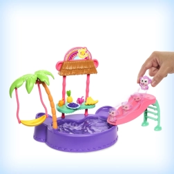 Genieße sommerlichen Spielspaß mit dem zauberhaften ENCHANTIMALS Tropik-Pool inklusive niedlicher Puppe (15 cm) und ihrer Freundin, dem Äffchen. Dich erwarten eine Rutsche, eine Palme mit Schaukel, ein Imbissstand und viele Accessoires für kreativen Wasserspaß am „Pool“ in Muschel-/Affendesign. Fülle den Pool mit Wasser und erfinde fantasievolle Geschichten voller Sonne und Freude!