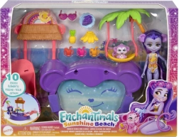 Dieses farbenfrohe ENCHANTIMALS-Spielset bringt Strandfeeling direkt ins Kinderzimmer. Die Puppe mit integrierter Badebekleidung und herzförmiger Sonnenbrille ist bereit für einen Tag voller Sonnenschein, Badespaß und Leckereien vom Stand. Das Äffchen kann an der Palme schaukeln oder die Rutsche direkt in den Pool hinunterflitzen.