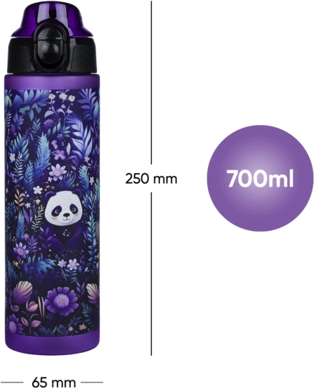 Die robuste Tritan-Flasche vereint Sicherheit, Funktionalität und verspieltes Design. Der Flip-Top-Deckel mit Sicherung ermöglicht schnelles Trinken mit einer Hand, während die Dichtung ein Auslaufen im Rucksack verhindert. Der transparente Körper mit ml-Skala hilft, die tägliche Trinkmenge im Blick zu behalten.