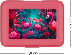 Entdecken Sie die ideale Lösung für den Transport von Snacks, die Design und Funktionalität vereint. Diese Brotzeitbox ist mit ihrer rosa Farbe und dem Flamingo-Motiv eine erfrischende Abwechslung im Alltag. Sie besteht aus stabilem Kunststoff, was ihre lange Lebensdauer gewährleistet.