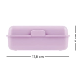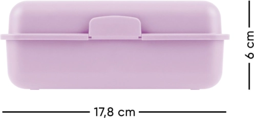 Diese praktische Brotdose aus Kunststoff in attraktivem Violett ist ideal für die tägliche Verpflegung in Schule, Arbeit oder unterwegs. Die Dose bietet ausreichend Platz für Ihre Lieblingssnacks und verfügt über eine Trennwand, die eine separate Aufbewahrung von Lebensmitteln ermöglicht. Nehmen Sie verschiedene Speisen mit, ohne dass sie sich vermischen.