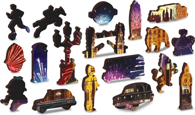 Dank des Laserschnitts haben einige Teile die Form bekannter Gebäude, Gegenstände oder Tiere, was den Spaß und die Schwierigkeit beim Puzzlen erhöht.