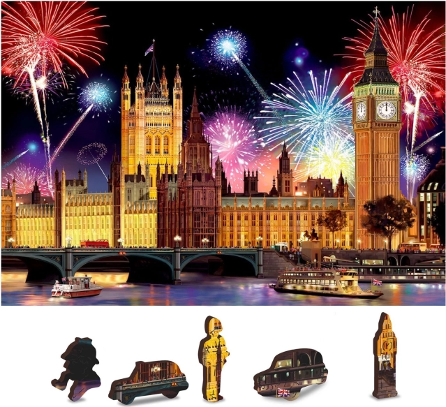 Dieses Holzpuzzle sorgt für unvergessliche Momente des Spaßes dank seines beidseitigen Designs, das es ermöglicht, nach Bild und Form zu puzzeln. Mit einzigartig geformten Teilen, die bekannte Londoner Gebäude, Gegenstände oder Tiere darstellen, ist dieses Puzzle schwerer zu vervollständigen, was den Spielspaß bei erfolgreichem Abschluss erhöht.