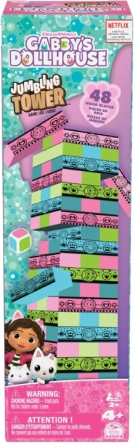 Mit 48 Holzblöcken in blauer, rosa und grüner Farbe und beliebten Motiven aus Gabri's magischem Haus ist das Spiel visuell ansprechend. Die Kinder werden von dem Design und den Ikonen ihrer Lieblingscharaktere begeistert sein. Für zusätzlichen Spaß enthält das Spiel auch einen bunten Würfel, der bestimmt, welcher Block entfernt werden soll.