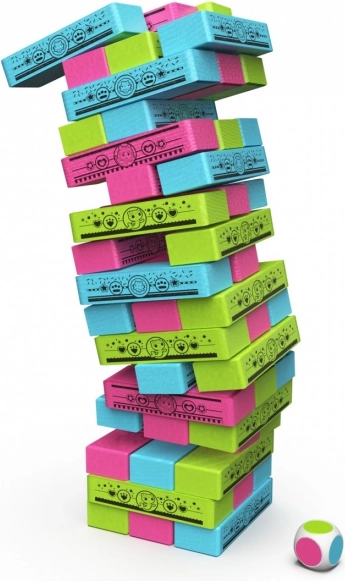 Das Spiel wird durch einen bunten Würfel ergänzt, der bestimmt, welche Farbe der Würfel ausgewählt werden soll, was plötzliche Momente der Überraschung und des Spaßes erhöht.
