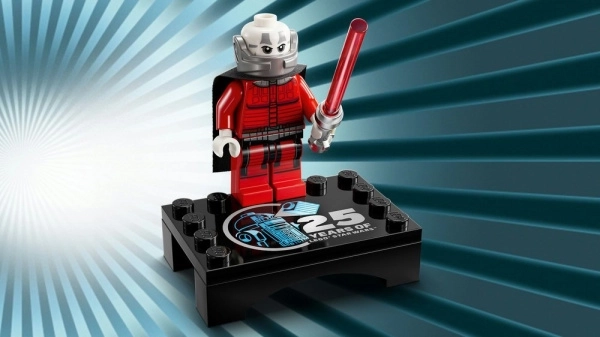 Enthalten sind eine Infotafel und eine Jubiläums-Minifigur von Darth Malak. Der stylische Ständer verleiht dem Modell eine repräsentative Optik in jedem Interieur.