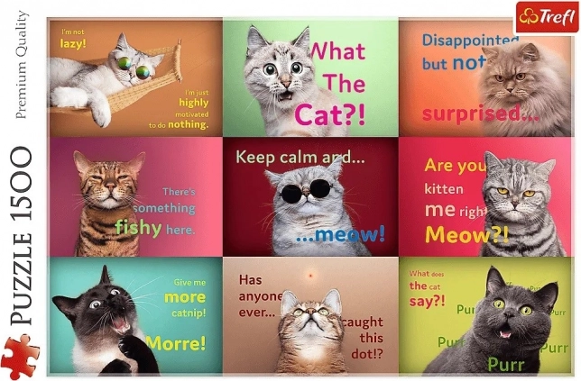 Diese Puzzle Lustige Katzenporträts haben 1500 Teile und ergeben nach dem Zusammensetzen ein Bild mit den Maßen 85 x 58 cm. Hergestellt aus hochwertigen Materialien und speziellem kalandriertem Papier, das Licht reflektiert, sind sie ideal für einfaches Zusammenfügen. In Polen mit Rücksicht auf die Umwelt hergestellt.