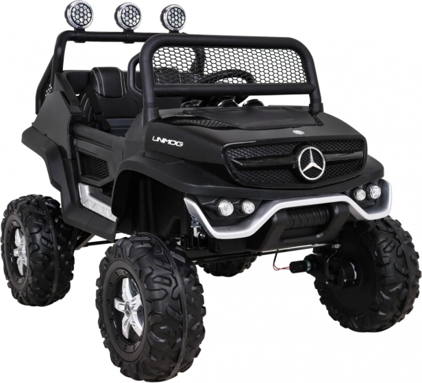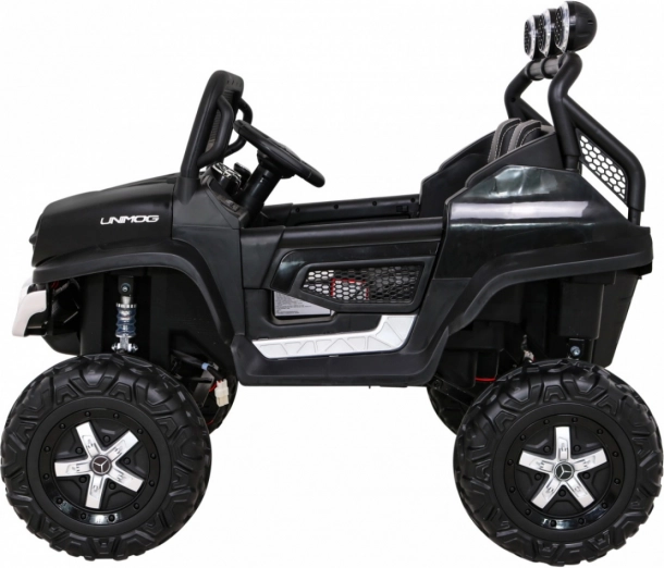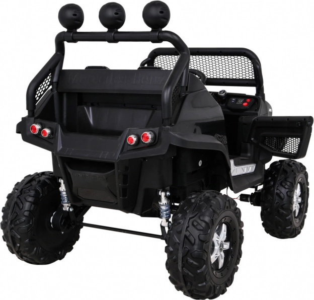 Mit dem vierrädrigen elektrischen Kinderwagen Mercedes Benz Unimog stürmen Ihre Kinder stilvoll ins Gelände. Das Modell ist mit starken Motoren ausgestattet und bietet die Möglichkeit, zwischen zwei oder vier Motoren zu fahren. Alles wird durch ein Sicherheitssystem mit einer Fernsteuerung mit STOP-Taste gewährleistet.