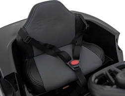 Breiter, gepolsterter Sitz mit Sicherheitsgurten hält das Kind auch bei längeren Fahrten sicher und bequem.
