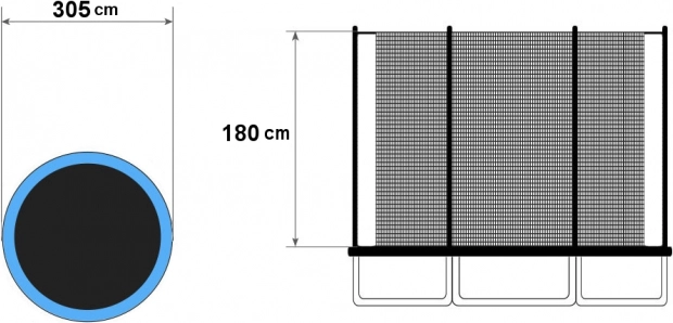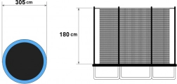 Dieses innere Schutznetz ist mit den meisten Trampolinen mit einem Durchmesser von 305 cm (10 ft) kompatibel und für 6 vertikale Stangen (3 Doppelfüße) ausgelegt. Die universelle Befestigung ermöglicht den Einsatz mit einem großen Teil der am Markt erhältlichen Modelle, unabhängig vom Hersteller. Der Eingang erfolgt über einen zweiseitigen Reißverschluss mit Schnalle für noch höhere Sicherheit von Kindern und Erwachsenen.