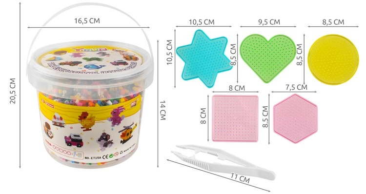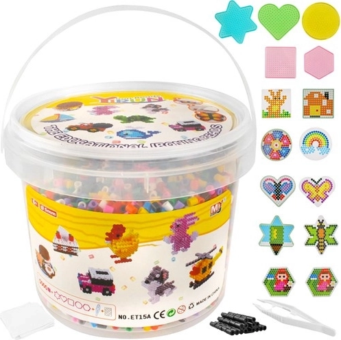 Dieses umfangreiche Bügelperlen-Set ist ideal für das Basteln zu Hause und im Kindergarten. Im Set finden Sie 5000 Perlen in zehn Grundfarben, praktische Schablonen und Zubehör, mit denen Kinder problemlos bunte Bilder, Figuren und Tiere gestalten. Durch das Hinzufügen mehrerer Schichten lassen sich auch 3D-Modelle kreieren. Die leichte und kompakte Verpackung in einem verschließbaren Eimer ermöglicht einfaches Transportieren und Verstauen.