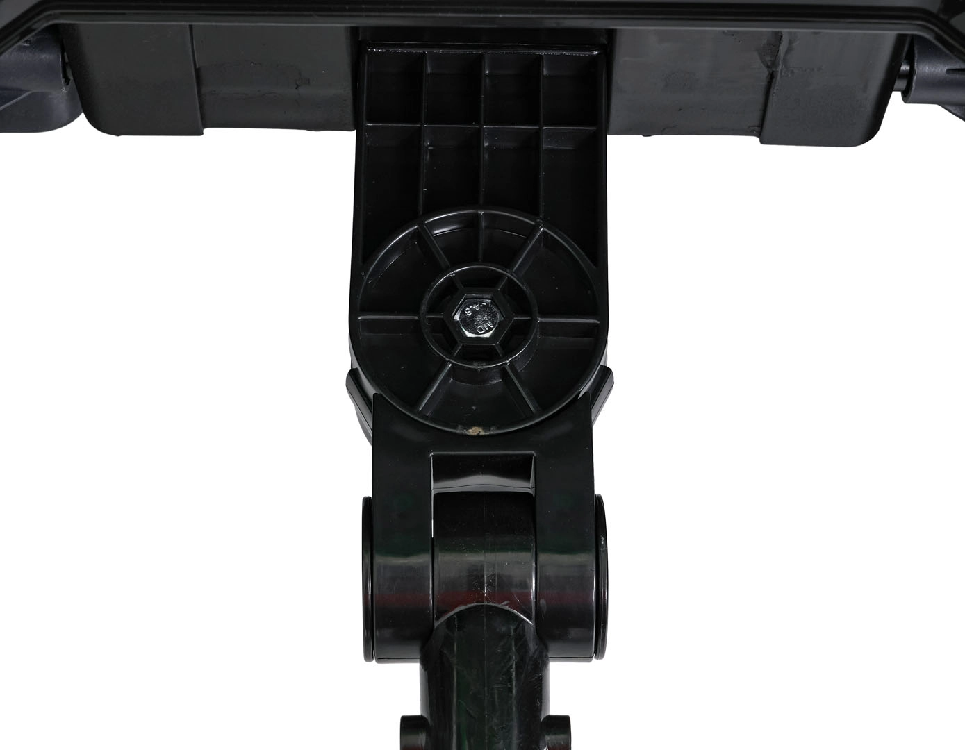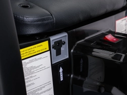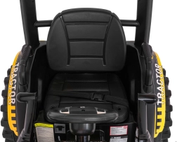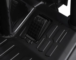 Sicherheit steht an erster Stelle dank der 2.4G-Fernbedienung mit Stop-Taste für sofortiges Anhalten. Komfort bietet der breite Sitz aus Ökoleder sowie die übersichtliche Bedienung. Für Unterhaltung sorgt das Audio-Panel mit MP3, USB, Bluetooth, integrierten Melodien und Lenkradgeräuschen. Vordere LED-Lichter verleihen einen realistischen Look und bessere Sichtbarkeit.