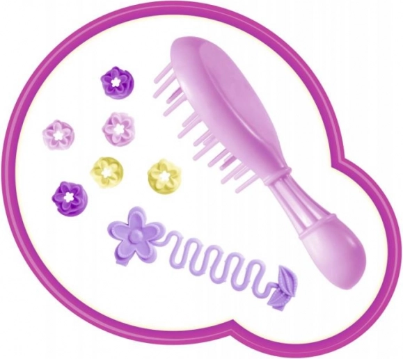 Die Puppe kommt mit Haarclips in Blumenform, die ihr attraktives Aussehen unterstreichen.