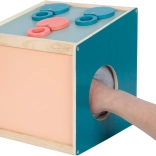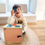 Diese moderne Holzsensorik- und Tastbox ist so konzipiert, dass sie die Sinne Ihres Kindes anregt. Mit zwei seitlichen Öffnungen und oberen aufklappbaren Klappen können Kinder auf verschiedene Arten erforschen - durch Berührung, Sehen, Hören und Riechen. Die Box ist hervorragend für die Entwicklung motorischer Fähigkeiten und eignet sich auch für ergotherapeutische Zwecke.