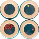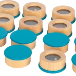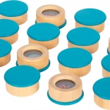 Dank der verschiedenen Materialien in jedem Behälter entwickelt das Spiel Hörfähigkeiten und bietet gleichzeitig visuelle Stimulation.