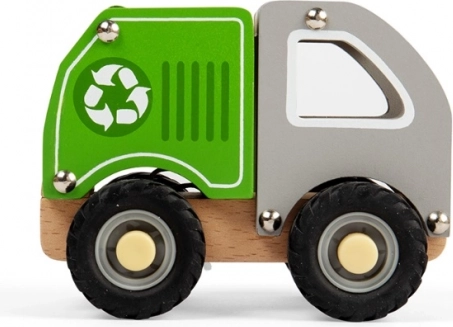 Dieser Holz-Recyclingwagen hat ein hervorragendes Design, das die kindliche Fantasie und Kreativität fördert. Es besteht aus FSC®-zertifiziertem Holz und ist mit ungiftigen Farben bemalt, was es zu einer sicheren und ökologischen Wahl macht. Leise Gummiräder sorgen für sanfte Bewegung auf verschiedenen Oberflächen, während bewegliche Teile dem Spielzeug interaktiven Charakter verleihen.