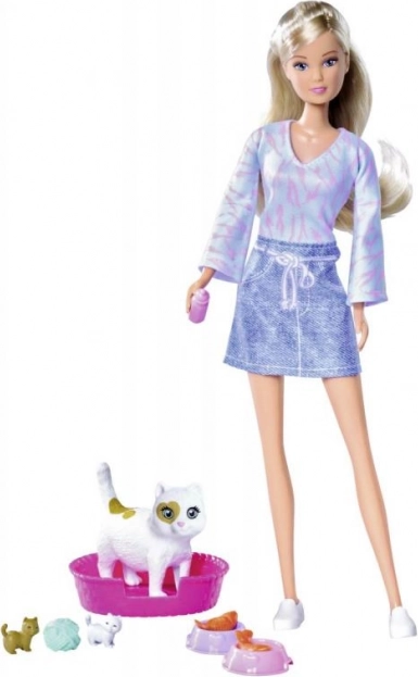 Genießen Sie stundenlangen Spaß mit Puppe Steffi und ihren drei niedlichen Katzenfreunden. Dieses einzigartige Spielzeug wurde für Kinder entwickelt, die gerne für ihre tierischen Freunde sorgen, und bietet unzählige Möglichkeiten für imaginäres Spiel: