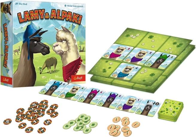 Das Brettspiel Lamas und Alpakas TREFL ist rasante Familienunterhaltung, die logisches Denken, Aufmerksamkeit und die Fähigkeit, Muster schnell zu erkennen, fördert. Ziel ist es, Karten auf das eigene Spieltableau zu legen, sodass drei Karten mit einem gemeinsamen Merkmal aneinandergrenzen – das kann die Tierart, die Zahl auf der Karte oder die Farbe ihrer niedlichen Accessoires sein. Je mehr Übereinstimmungen, desto mehr Punkte und desto größer die Gewinnchance.