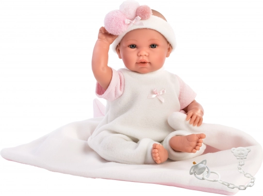 Dieses stilvolle Set für die Puppe umfasst ein bequemes Outfit und eine weiche Wickelunterlage, die an ein Hörnchen erinnert – eine großartige Wahl zum Zudecken und Beruhigen der Puppe während des Spiels. Dank der sorgfältigen Handarbeit aus Spanien überzeugt das Set mit feinen Details und angenehmen Materialien.