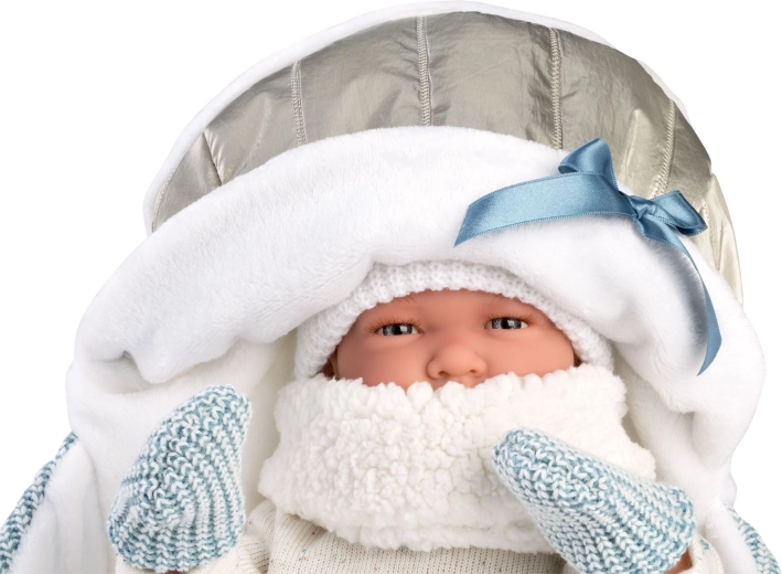 Lege die Puppe bequem ab und nimm sie mit – die kuschelweiche Auflage mit Kapuze und praktischen Gurten schützt und erleichtert das Tragen.