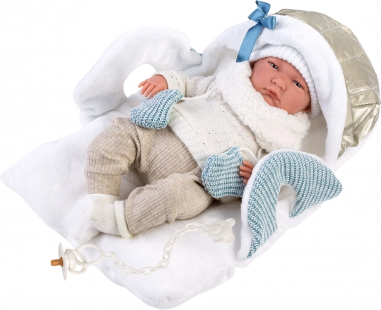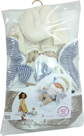 Dieses elegante NEW BORN Puppenoutfit überzeugt durch sorgfältige Verarbeitung und zeitloses Design. Im Set finden Sie abgestimmte Strick- und Textilteile für den täglichen und winterlichen Look, ergänzt durch eine weiche Unterlage mit Kapuze und praktischen Gurten, mit denen sich die Puppe leicht tragen lässt.