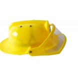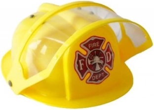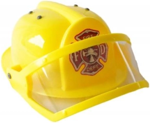 Der gelbe Helm mit Feuerwehr-Emblem und klaren Linien fördert die Fantasie und verleiht jedem Kostüm einen professionellen Eindruck.