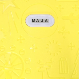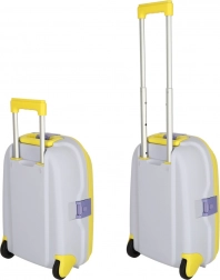 Leichter und robuster Kinder-Kabinenkoffer mit zwei Rädern und ausziehbarem Griff für bequemes Reisen. Bietet dank zwei Fächern eine große Kapazität, LED-leuchtende Räder für bessere Sichtbarkeit und Spaß sowie die Möglichkeit zur Namenkennzeichnung mit Aufklebern. Das leuchtende Gelb und die verspielten Reliefmotive begeistern kleine Reisefans.