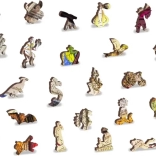 - mit einzigartig geformten Teilen, die je nach Motiv bekannte Bauwerke, Gegenstände oder Tiere darstellen