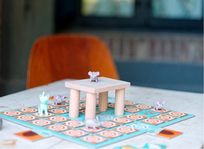 Begebt euch in die Welt cleverer Züge und Bluffen. Im Familienspiel Djeco Chop! Chop! wird ein Spieler zur gerissenen Maus auf Käsejagd, während der andere die listige Katze steuert. Das Ziel ist klar: Die Maus muss 10 Stück Käse sammeln, bevor sie die Katze fängt. Die Spannung steigt mit jedem Würfelwurf und jedem Zug auf dem Spielplan.