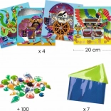 Erwecke das Piratenabenteuer mit dieser Collage-Aktivität zum Leben, die jeden kleinen Künstler begeistert. Eure Kinder können 4 Bilder mit Piratenthema mithilfe von Folien und Steinchen verzieren.