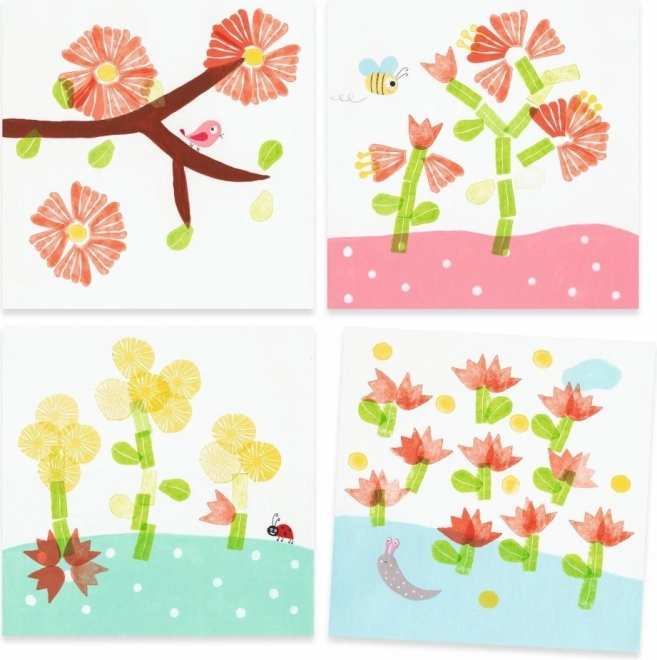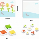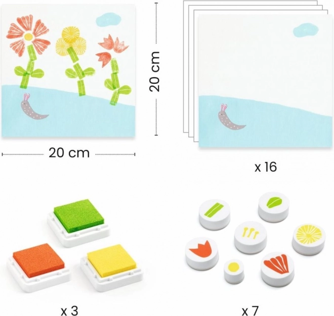 Mit dem DJECO Stempelset Blumen können Kinder das Drucken von Stempeln gemäß Anleitung oder nach eigener Fantasie ausprobieren. Jedes Set enthält verschiedene Natur- und Blumendesigns, die zur Kreativität anregen.