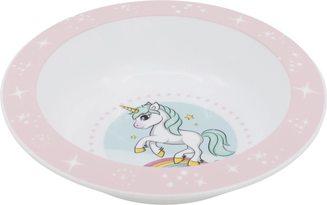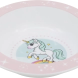 Die Kinderschüssel mit zauberhaftem Einhornmotiv fördert die Freude am Essen und die Selbstständigkeit am Tisch. Die ergonomische Form liegt auch in kleinen Händen gut, und die robuste Ausführung ist ideal für den täglichen Gebrauch.