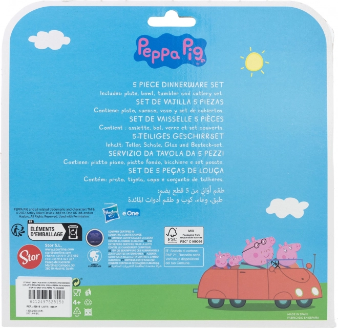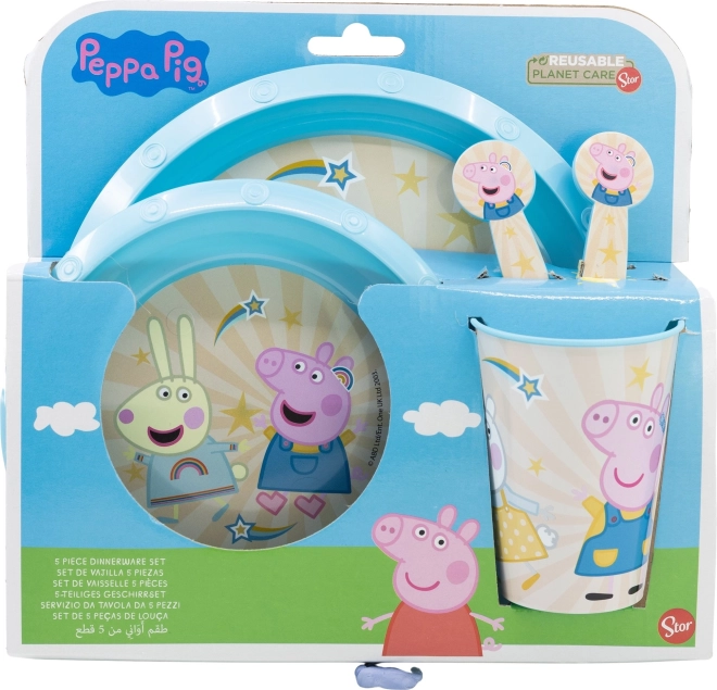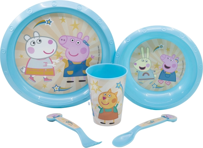 Genießen Sie jede Mahlzeit mit diesem farbenfrohen Kinder Geschirrset von Peppa Pig! Dieses fünfteilige Set bringt Spaß auf den Esstisch und ist ideal für kleine Fans von Peppa Wutz.