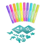 Zubehörset für Projekt Plüsch Neon bietet kreativen Spaß voller Stil. Das Set enthält neonfarbene Stifte und über 20 Schablonen, die fantastische Muster ermöglichen.
